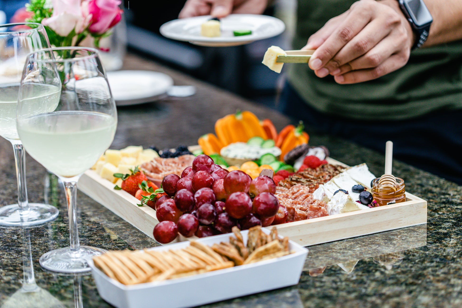 What a better way to gather a group of family members and friends than around this beautiful charcuterie centerpiece. Made with an assortment of 2 cured meats, 3 cheeses, mixed nuts, cornichons, delicious dip, honey, seasonal fruit, sweet treats and a variety of crackers. This best seller will give your guests something to talk about.